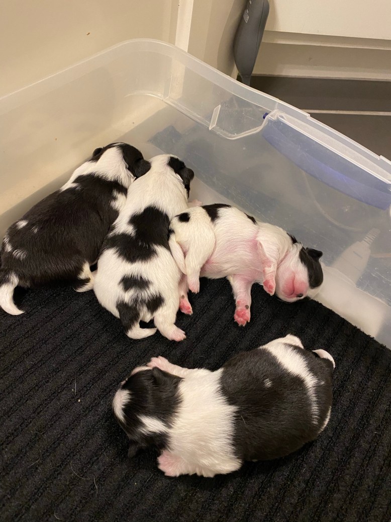 Call Tom at 405-821-8820 or email us if you are interested in one of these Rhett X Maggie babies!💙♥️💙♥️💙♥️🐶 tuxedochin@gmail.com